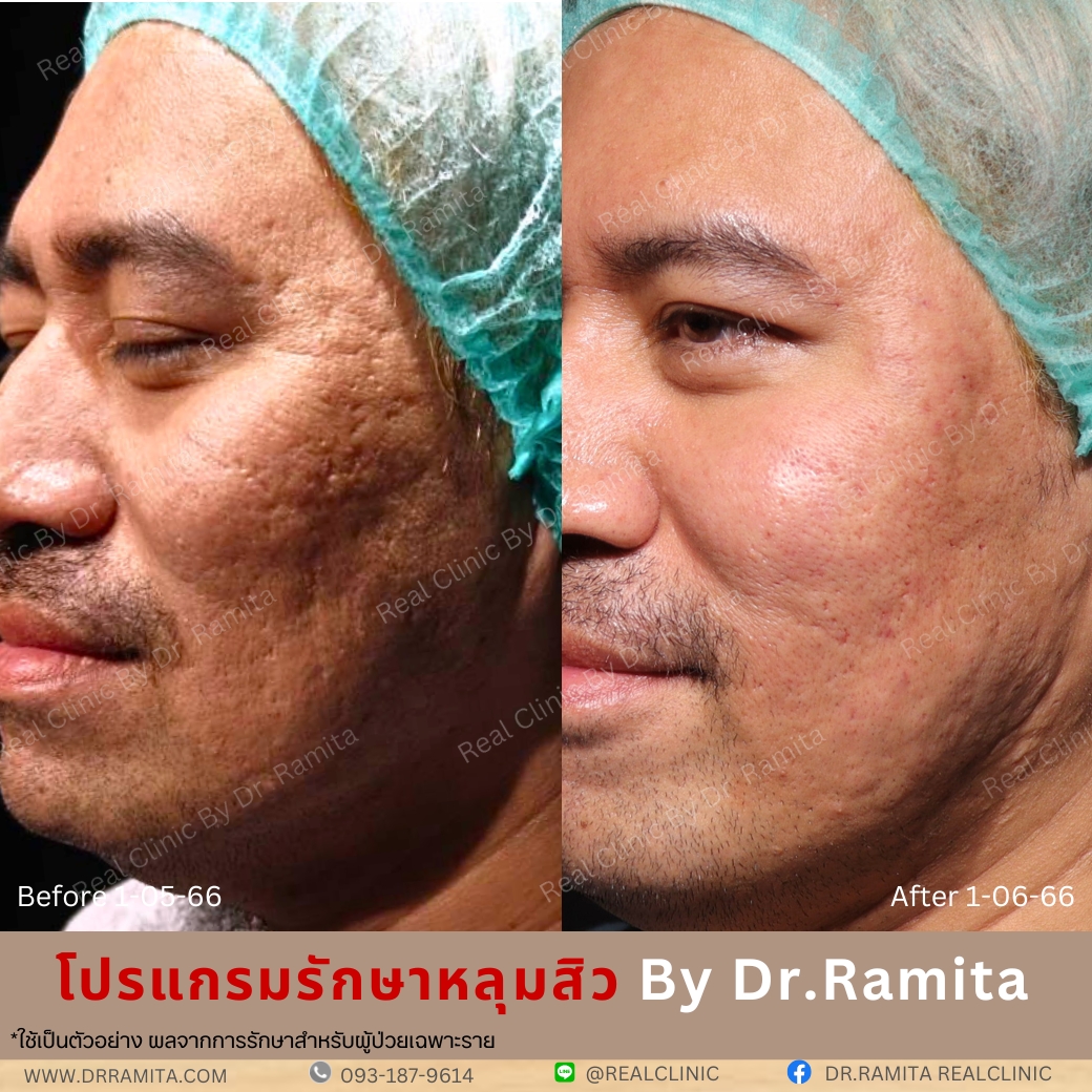 โปรแกรมรักษาหลุมสิวที่พัฒนาโดย Dr.Ramita ซึ่งเน้นการรักษาโดยวิธีหัตถการแพทย์เป็นหลัก (Non-Energy Based Acne Scar Revision) ผสมผสานหลายวิธีการรักษาหลุมสิว เสริมด้วยการฉีดสารฟื้นฟู ร่วมกับฉีดก๊าซเข้าไปตัดพังผืดและไปกระตุ้นเนื้อเยื่อคอลลาเจนใต้ผิว เพิ่มเติมด้วยสารฟื้นบำรุงช่วยปรับปรุงคุณภาพผิว เสริมประสิทธิภาพการรักษาให้เห็นผลเร็วยิ่งขึ้น ลดการบวมช้ำ พักหน้าน้อยลง อ่านข้อมูลเพิ่มเติม