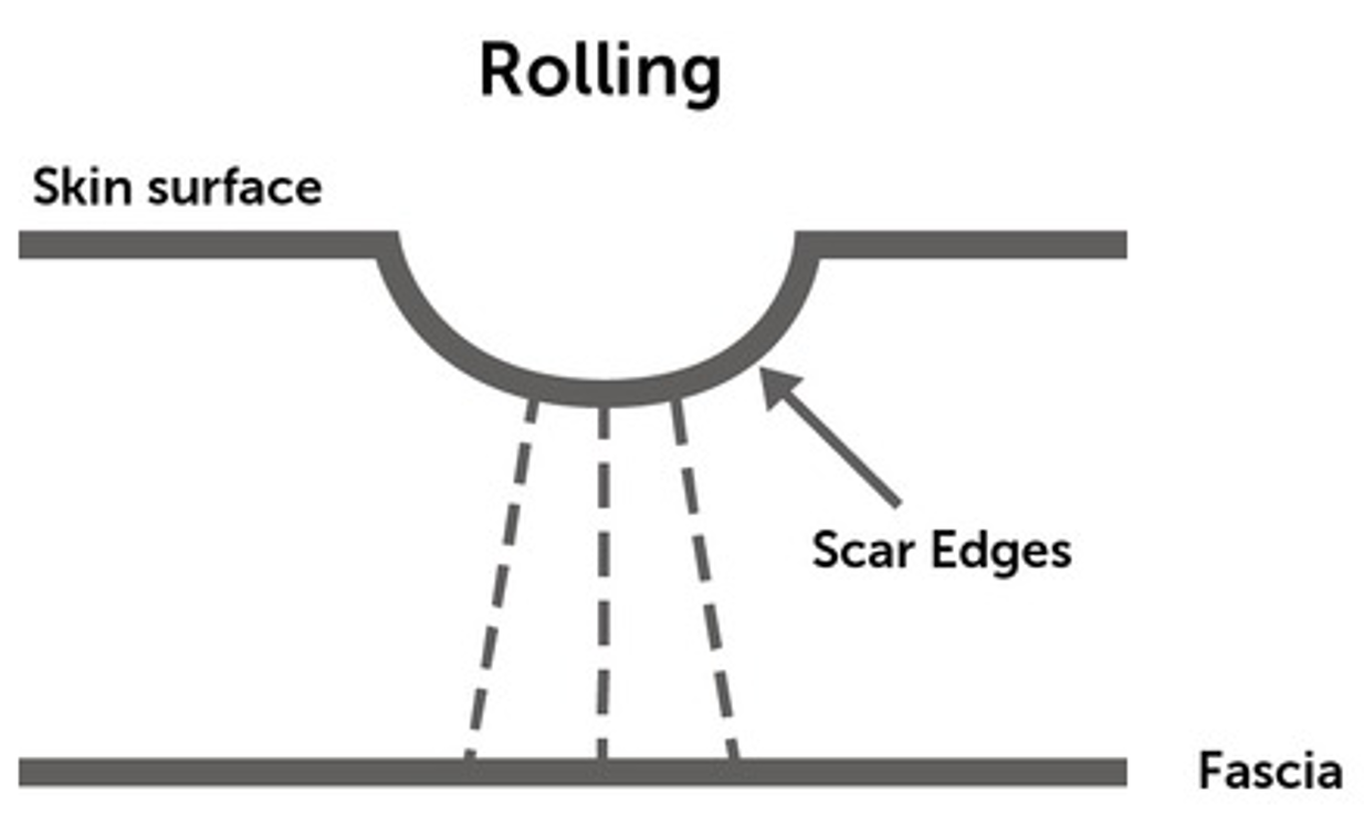 หลุมสิว Rolling Scar คือแผลเป็นหลุมสิวชนิดที่มีการฝ่อยุบตัวหรือสูญเสียปริมาตรของชั้นเนื่อเยื่อข้างในผิว