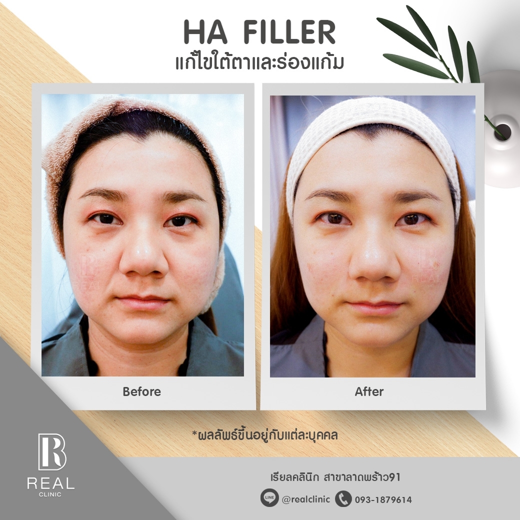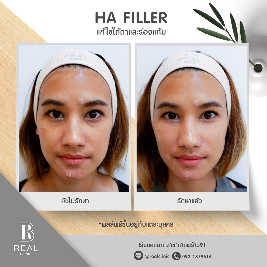 1.ฟิลเลอร์ใต้ตา ปัญหาใต้ตาคล้ำโทรม ปัญหามีถุงใต้ตา ทำให้ใบหน้าดูมีอายุกว่าวัย เมื่อลึกมากขึ้นเรื่อยๆ ทำให้เห็นลักษณะขอบตาคล้ำ ดูเป็นตาแพนด้า เพราะร่องลึกนี้ก่อให้เกิดเงาดำตกกระทบใต้รอบดวงตา เกิดการแยกส่วนของผิวหนังบริเวณเบ้าตา และหน้าแก้มออกจากกัน ทำให้ดูมีอายุมากขึ้น แก่ โทรมกว่าวัย